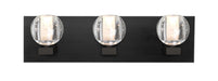 The Boca 3 Vanity is comprised of an appealing globe-shaped clear solid glass with bubbles, accented by an interesting inner frosted tube to diffuse the light source. The splash of concealed LED illumination through the solid glass makes the Boca 3 a stunning display of light refractions. Each globe is cantilevered from the plated rectilinear backplate on a die cast fitter. These stylish and functional luminaries are offered in a beautiful brushed Bronze finish.