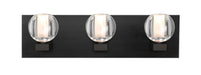 The Boca 3 Vanity is comprised of an appealing globe-shaped clear solid glass, accented by an interesting inner frosted tube to diffuse the light source. The splash of concealed LED illumination through the solid glass makes the Boca 3 a stunning display of light refractions. Each globe is cantilevered from the plated rectilinear backplate on a die cast fitter. These stylish and functional luminaries are offered in a beautiful brushed Bronze finish.