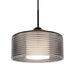 The Belu pendant features a ribbed drum glass shade that adds a touch of elegance and sophistication to any space. The glass shade has horizontal ribbed detailing and a inner white acrylic shield, which creates a beautiful and distinctive visual effect when illuminated. The cord pendant fixture is equipped with a 10' SVT cordset. These stylish and functional luminaries are offered in a beautiful Black finish.