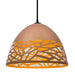 The Kiev Copper Pendant features a unique shade that melds the beauty of shimmering glass with the visual advantages of cut metal, which results in a compelling optical display in a smartly modern design. With random stenciled openings placed throughout the bottom portion of this pendant, the concealed light source focuses the eye through the multi-dimensional sightlines while allowing for a eye-catching sparkle from the exposed clear glass and dramatic play of light through the accents and onto adjacent surfaces. The cord pendant fixture is equipped with a 10' SVT cordset. These stylish and functional luminaries are offered in a beautiful Black finish.