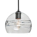 The Spirit 8 Clear Pendant is composed of a clear glass globe, with an interesting circular optical pattern blown as an additional layered ring along the interior wall of the glass. The dramatic play of light through the sculpted layer and onto adjacent surfaces make for a striking affect, along with the modest display of the lamp filament behind the glass. The cord pendant fixture is equipped with a 10' SVT cordset. These stylish and functional luminaries are offered in a beautiful Black finish.