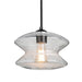 The Zen Clear Pendant is a transitional design composed of a transparent Clear "Hour-Glass" shaped glass , with an interesting bubble pattern blown randomly throughout the glass The pleasing play of light through the shade's bubble accents makes for a striking affect, created by the exposed light source positioned inside the shade. The cord pendant fixture is equipped with a 10' SVT cordset. These stylish and functional luminaries are offered in a beautiful Black finish.