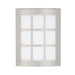 Our Moto collection is built for outdoor use, but the grid faceplate design allows it to be equally attractive indoors. ADA-Compliant. Our White Acrylic glass is a clean, glossy, semi-translucent white that suits well for any modern or contemporary decors. When lit it gives off a soft glow that exudes a warm mood. The acrylic offers greater resistance to the abuse of the elements perfect for outdoor applications. These stylish and functional luminaries are offered in a beautiful Silver finish.