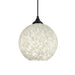 The globe-shaped Coco is a blown glass with a neutral décor and classic shape that blends gracefully into all environments. Our Carrera glass is a classic yet modern décor that gives off a soft white light. Clear molten glass is rolled in alabaster powder like frit, and then blown into shape with a semi-clear frosted white inner finish. This décor is created by rolling molten glass in small bits of white called frit. The smooth satin finish on the clear outer layer is a result of an extensive etching process. This blown glass is handcrafted by a skilled artisan, utilizing century-old techniques passed down from generation to generation. Each piece of this décor has its own artistic nature that can be individually appreciated. The cord pendant fixture is equipped with a 10' SVT cordset and a low profile flat monopoint canopy, suitable for usage outdoors under covered ceiling. These stylish and functional luminaries are offered in a beautiful Black finish.