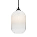 The Omega 12 Pendant is a transitional design composed of a corded transparent white glass cylinder pendant, with an interesting gradient pattern from top to bottom of the glass. The dramatic play of light through the gradient color is a sophisicated affect, along with the modest display of the lamp filament behind the glass. The cord pendant fixture is equipped with a 10' SVT cordset and a low profile flat monopoint canopy, suitable for usage outdoors under covered ceiling. These stylish and functional luminaries are offered in a beautiful Black finish.