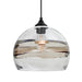 The Spirit 10 Clear/Smoke Pendant is composed of a clear glass globe, with an interesting circular optical pattern blown as an additional transparent smoke layered ring along the interior wall of the glass. The dramatic play of light through the sculpted layer and onto adjacent surfaces make for a striking affect, along with the modest display of the lamp filament behind the glass. The cord pendant fixture is equipped with a 10' SVT cordset and a low profile flat monopoint canopy, suitable for usage outdoors under covered ceiling. These stylish and functional luminaries are offered in a beautiful Black finish.