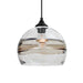 The Spirit 8 Clear/Smoke Pendant is composed of a clear glass globe, with an interesting circular optical pattern blown as an additional transparent smoke layered ring along the interior wall of the glass. The dramatic play of light through the sculpted layer and onto adjacent surfaces make for a striking affect, along with the modest display of the lamp filament behind the glass. The cord pendant fixture is equipped with a 10' SVT cordset and a low profile flat monopoint canopy, suitable for usage outdoors under covered ceiling. These stylish and functional luminaries are offered in a beautiful Black finish.