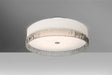 The low-profile Paco 19 flush mount uses a multi-layered glass, with two cylindrical sections fused together onto a flat white glass. The top portion is opal glossy glass with a contemporary polished finish, and the bottom is a transparent smoke blown glass with an outer texture of coarse sandstone resembling the beautiful cut patterning of a rock formation. The tranquil glow has a low key harmonious display that exudes a warm mood. When lit the glass is vitalizing as well as stylish.