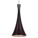 Our Rondo metal shade LED Pendant is a contemporary aluminum design, with semi-specular alzak reflector for shielding the light source. The sleek trumpet-shaped design, along with the strong burst of focused downlight, makes this pendant ideal for task oriented applications in modern environments. The 12V cord pendant fixture is equipped with a 10' coaxial cordset with teflon jacket and quick connect jack and rail adapter. These stylish and functional luminaries are offered in a beautiful brushed Bronze finish.