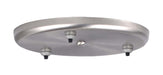 The three light large round canopy fixed-connect canopy is compatible with fixed-connect pendant elements. This hardware is offered in a beautiful Satin Nickel finish.