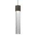 The Wanda 12 LED Pendant is composed of a narrow clear glass cylinder, with an interesting bubble pattern blown randomly throughout the glass. The pleasing play of light through the bubble accents make for a striking affect, along with the splash of concealed LED downlight makes the Wanda ideal for task oriented applications. The 12V cord pendant fixture is equipped with a 10' braided coaxial cord with teflon jacket. These stylish and functional luminaries are offered in a beautiful brushed Bronze finish.