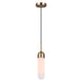 Introducing the BEVIN IPL1126A01GD, a sleek and contemporary 1-light cord pendant that adds a touch of elegance to any modern space. This pendant, with its beautiful flat opal glass shade and subtle gold finish, is a perfect blend of sophistication and contemporary design. Ideal for those who appreciate minimalist yet impactful design, the BEVIN pendant is a versatile choice for various settings, from cozy reading nooks to chic dining areas. The pendant's size, at 4.75 inches wide and adjustable in height from 16.75 inches to 64.75 inches, makes it suitable for a range of spaces and ceiling heights. It is designed to accommodate 60W Type B or T bulbs, ensuring your area is well-lit with a warm and inviting glow. The BEVIN pendant not only provides efficient lighting but also serves as a stylish decorative piece. Easy to install and crafted with quality materials, the BEVIN pendant is a durable and practical addition to your home or office. Its elegant design, combined with its functionality, makes it a desirable choice for anyone looking to enhance their space with a touch of modern elegance and efficient lighting.