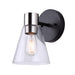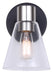 The DAVINA IVL1127A01BKN is a one-light vanity fixture featuring matte black and brushed nickel finishes with clear glass. It accommodates a 60W Type A bulb and measures 5.5 inches wide, 8.75 inches high, and 7.5 inches deep. The Easy Connect feature simplifies installation, making it perfect for modern bathrooms.