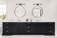 The DAVINA IVL1127A03BKN is a three-light vanity fixture featuring a striking combination of matte black and brushed nickel. With clear glass shades, it supports 60W Type A bulbs and measures 23.5 inches wide, 8.75 inches high, and 7.5 inches deep. This vanity light, with Easy Connect included, adds a contemporary touch to any bathroom.
