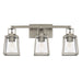 3 light vanity with Antique Nickel finish and clear rain glass.