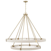 Casual chic meets all-around luxury with the Delaney Two-Tier Chandelier. Crafted in a double ring silhouette, the hand-wrapped Bleached Natural Rope adds soft dimension to the warm Matte Brass finish, bringing elevated designer style to any space.