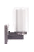 The Texture Vanity Collection offers an updated rugged appeal of the wide hammered metal back plate complements the double glass shades featuring a crisp clear glass outer shade with white frosted inner shade. Texture is offered in five sizes from a single light sconce to a five light vanity.