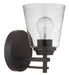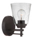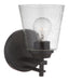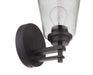 With its distinctive double rail silhouette and clear seeded glass globes for maximum styling, the Drake 1 Light Wall Sconce in Flat Black is equally at home in a transitional or traditional setting.