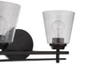 With its distinctive double rail silhouette and clear seeded glass globes for maximum styling, the Drake 2 Light Vanity in Flat Black is equally at home in a transitional or traditional setting.