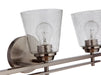 With its distinctive double rail silhouette and clear seeded glass globes for maximum styling, the Drake 3 Light Vanity in Brushed Polished Nickel is equally at home in a transitional or traditional setting.