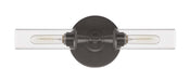 Two sleek clear glass cylinder shades combine with the classic round backplate of the Modina 2 light linear wall sconce to create this timeless favorite from Craftmade that can be mounted horizontally or vertically. Dimmable 6 Watt LED filament bulbs are included.