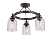 Craftmade 53653-FBDT Three Light Semi Flush Mount, Flat Black / Dark Teak