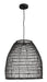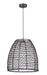 Our damp rated oversized 18" diameter x 17.75" height woven matte black rattan 1 light pendant features 10' cord for adjustable height and matte black canopy and hardware.