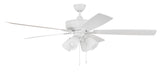 The ideal combination of excellent performance, exceptional value and timeless style, the Craftmade Super Pro 60" ceiling fan with white frost glass four light (non-dimmable LED bulbs included) light kit featuring a clean motor, updated straight blade arms and canopy is built for performance. The dual mount, heavy-duty, 3-speed, reversible fan includes custom 60" reversible blades. Optional remote controls are available(Sold Separately).