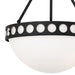 The Kirby chandelier has a stylish silhouette that exudes classic appeal. The opal white glass shade filters beautiful light that evenly illuminates a warm glow. The Kirby is accented at the top with a geometric pattern giving it a unique look. Hang this fixture in multiples over a kitchen island to make a real impact on an interior.