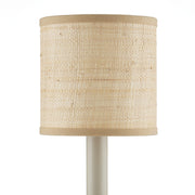 Petite shades made of a finely woven grasscloth bring added warmth to a space. Due to the natural material's inherent texture, there is a knotty richness to their surfaces, though the lighter hues are so delicate they read like linen. In fact, the shades for chandeliers and wall sconces in this collection are of the finest weaves made by hand, evidenced by the tiny telltale knots along the surface that prove they are the ultimate definition of artisanal. The shades come in three different weaves, the one with the most texture trimmed in thin bands of cloth and the finer ones culminating with a rolled edge. Both designs exhibit a tailored feel, as you can see from this natural version of the drum shade. Top Diameter: 5" Bottom Diameter: 5" Height: 5"