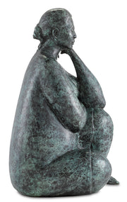 Our Lady Meditating Bronze sculpture is made from a lost-wax technique when boiling bronze is poured into a mold covering an original wax sculpture that melts away. Once set, there is a very long process of refining the bronze to give it patina. This is among our bronze art pieces originally created by an unknown artist.
