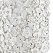 With a surface that is studded with beautifully fashioned white flowers, the Jessamine Small White Cachepot is truly an artisanal piece. Rather than apply one type of bloom, a number of floral shapes are intermingled to give the white decorative accessory a charm. The handmade character of the piece comes from the fact that each flower is created individually and applied, one-by-one, by hand. The white planter will be a plant's biggest complement.