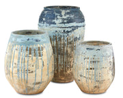 Currey and Company 2200-0005 Planter, Antique White / Blue Drip