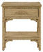 With the earthy feel of rattan and wicker, the Olisa Rope Nightstand is covered in braided Abaca rope to bring a natural elegance to a room. The dexterity required to wrap a piece of furniture so skillfully makes this tan nightstand special.