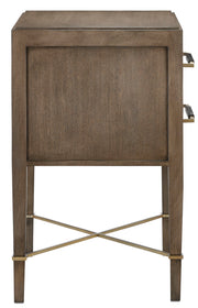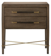 Made of mahogany in a woodland-inspired chanterelle finish, the Verona Chanterelle Nightstand is warmly handsome with its metal detailing in a champagne finish. The stretchers on this brown nightstand bring it its flair.