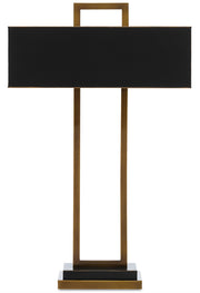 The Otto Table Lamp is a study in rectangles with an intermingling of antique brass and oil-rubbed bronze finishes on the metal. Special features of the geometrically rich black lamp include its tailored profile and how carefully our designers chose the placement of the metal shade to form a counterpoint to the ribs of metal it intersects.