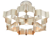 The Grand Lotus Silver Small Chandelier receives its majestic good looks from a combination of stunning workmanship and antique contemporary silver leaf finish. The silver chandelier is skillfully fashioned from wrought iron.