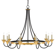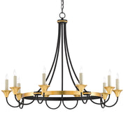 Currey and Company 9000-0474 Ten Light Chandelier, Washed Black/Contemporary Gold Leaf