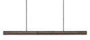 The Lyon Linear Large Chandelier was designed by Tom Caldwell as a handsome long chandelier to illuminate kitchen islands and bars. The bronze verdigris finish brings the metal serious warmth, which is contrasted by the white acrylic diffuser that softens the light. Tom notes that this bronzed chandelier would be perfect over a pool table or in a game room, and the fixture is dimmable and fitted with integrated LED technology.
