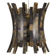 The shades of the Alsop 36-Light Multi-Drop Pendant were inspired by tortoise shell bracelets that were popular during the era when Hollywood glamour was at its height. Made of composite with faux-horn surfaces, the shades on the brown pendant will be warm elements in a space. A refined aspect of the design is how the ribs arc outward and how they are staggered for greater texture than their surfaces bring. The canopy of this piece is luminous in a painted silver finish. This fixture is among Currey & Company's introduction of cluster lights, which includes multiple configurations.