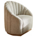 Derived from the Persian word for sea, the Daria swivel chair gained its namesake from the shell-motif channel tufting on its front, sides, and back. The vertical tufting meticulously follows the curvature of the frame, creating an arresting display of harmony. Off-white boucle performance-treated fabric and a solid Oak wood base supply durability in this sturdy Mid-century design.