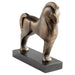 Sinon, master of persuasion, convinced the Trojans to retrieve the iconic wooden horse left ashore by the Greeks to the town square of Troy, knowing the bravest Grecian warriors lie in wait to overthrow the city. The Sinon sculpture represents the cunning resolve that granted the Greeks entry into the once impervious city of Troy. Hand sculpted by local artisans, the antique brass finished cast aluminum sculpture offers a formidable overture as it sits atop a black Morwarh marble base.