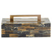Cairo, or "victorious city," is the home of last remaining site of the Seven Wonders of the Ancient World, the Great Pyramid. Inspired by the timeless form of the pyramid, the Cairo box is hand-crafted and assembled from a mosaic of multi-colored triangular pieces meticulously cut from faux horn. This lidded box opens to reveal a black-painted interior. Each piece is a unique display of variations in color.