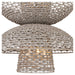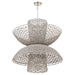 A reflected geometric form composed of water hyacinth and rattan adds drama through a symphony of shadows in the Masasa chandelier. Pale grey finished water hyacinth is weaved in a mushroom-like shape and surrounds six medium base sockets. The lamps appear to be in one large central cluster but are reflected within the shades - three facing upwards and three facing downwards. Nickel-finished hardware complements the shade, adding another dimension to this invigorating design. Garnish your space with natural elements and striking composition with the Masasa chandelier.