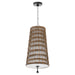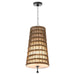Overlapping shades of tobacco-finished dark cane and linen cast a soft glow through elongated, tapered-drum shapes. A matte black circular canopy is complemented by a simple yet elegant finial securing a frosted acrylic diffuser. Warm light is emitted from 3 medium base sockets, radiating comfort and style. Add the natural material of the rattan Mindoro pendant to your next interior design project.
