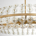 The Selena series of designer lighting is noted for its molded glass disks and elegant matte black or aged brass frames. The shade is cylindrical, with one circular horizontal band with several vertical rods connected reminiscent of a dandelion. Each rod holds a series of clear, concentric, circular molded glass disks with an antiqued ripple design. The medium base sockets are positioned inside the frame, casting a warm glow through the glass discs. The series hangs from a chain attached to a circular canopy.