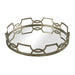 This 16-inch mirrored tray is set in a free form iron frame and finished in deep silver tones. Perfect for decorative displays and placing decanters on, the tray is striking and functional. A 20-inch version is also available.