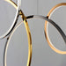 Intersecting rings for this large scale sculpture available in either vertical or horizontal configurations. Multiple high end finishes were used to blend in with today's eclectic interiors. The perfect fixture to fill a large space, this can also be installed against the wall as artwork.