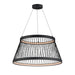 Cross-threaded strands of cotton are strung through two Matte Black illuminated rings of LED. The black cotton thread creates a form both structural and airy in composition. These pendants perfectly capture the art of weaving techniques by producing a large truncated cone of with the use of minimal material.