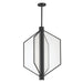 Translucent acrylic panels dotted to guide indirect LED strips integrated into the body of the fixture. The angular forms of the pendants create a strikingly modern display of light that is both airy and voluminous. An additional LED GU10 bulb is recessed at the bottom of the fixture for additional functional light. Available in Satin Brass or Matte Black finishes.